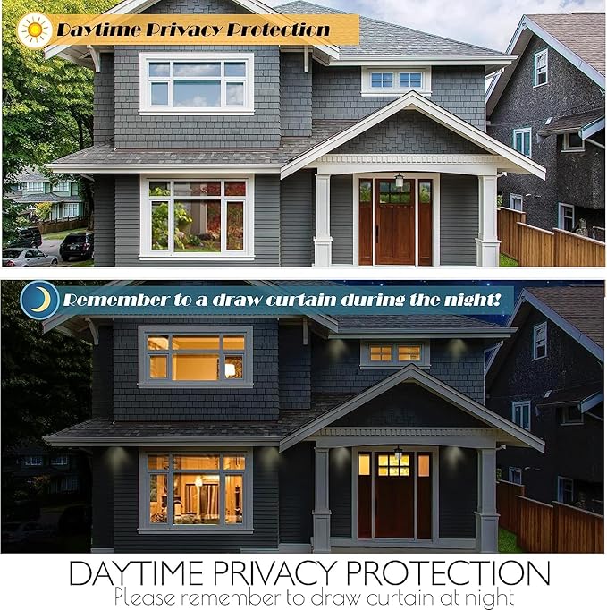 - SUPERIOR DAYTIME PRIVACY PROTECTION β Applying our window privacy film see out not in lets you see out and does not let prying eyes see in during daytime while letting natural lights in, and from the outside, the glass shows a mirror like reflective surface. NOTICE: When the inside light is stronger than the outside light at night, the house window tint CANNOT provide privacy, and the mirror reflective effect will disappear. Do remember to draw the curtains during the night.