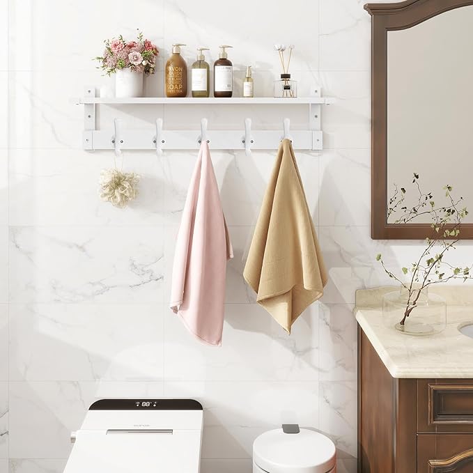 - SLEEK & VERSATILE AESTHETICS: The modern hooks with shelf is seamlessly blending with various home decors, from modern to rustic while ensures all your essentials are organized and easily accessible; offering a perfect balance between functionality and decorative charm for any room