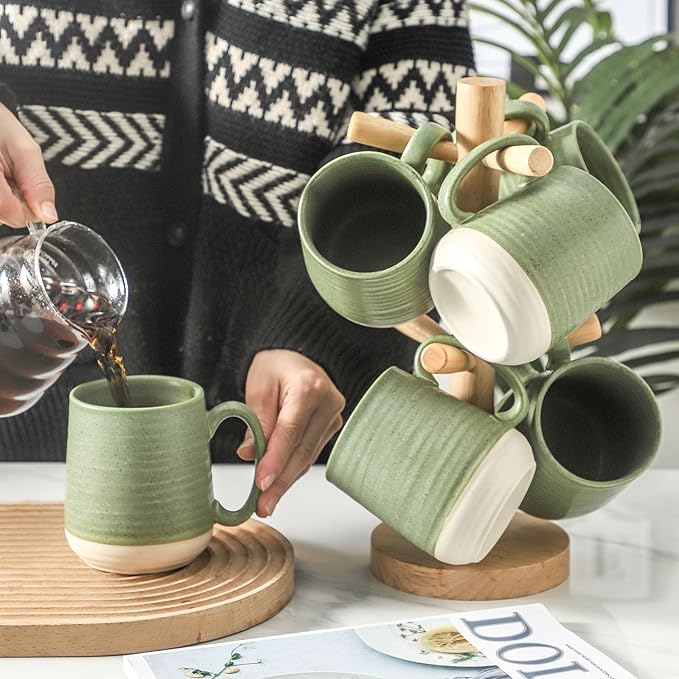 - FUNCTIONAL AND PRACTICAL: The green mugs measure 4.7*3.1*4.1inch which is large and deep to hold any of your favorite beverage. With a capacity of 15 oz, these mugs set are perfect size to hold coffee, tea, milk, cocoa, cappuccino and hot chocolate. Suitable for home, office, party and holiday.