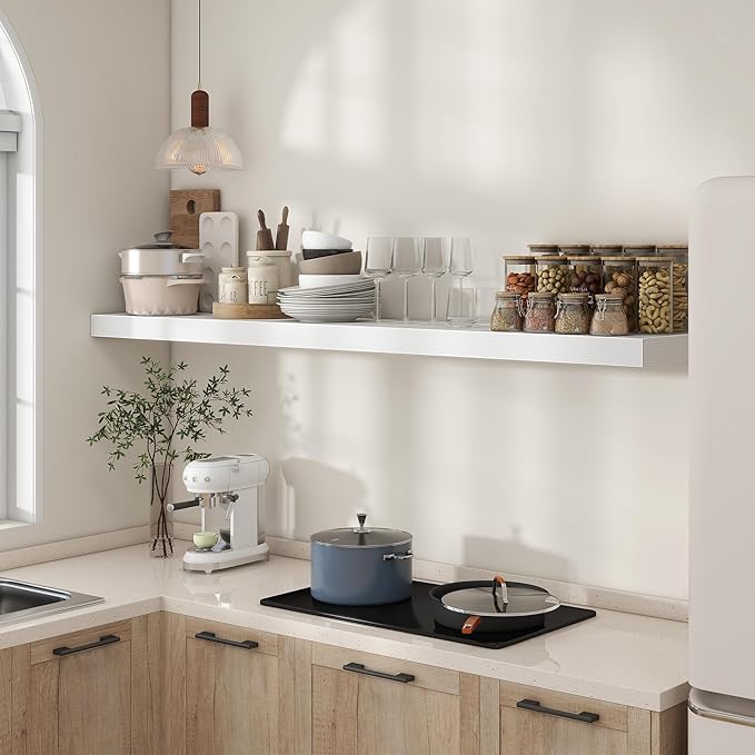 White Floating Shelves for Wall - 72 Inch Wide x 12 Inch Deep Wall Shelves Set of 1 - Rustic White Wood Shelves for Living Room, Bathroom, Laundry Room, Bedroom, Kitchen, Home Office