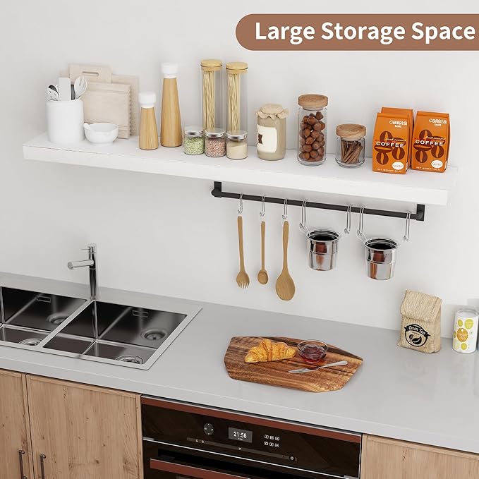 - 8" DEEP-MORE SPACE MORE TIDINESS: Axeman 56 inch floating shelves are designed to be deeper and thicker than traditional floating shelves, with a thickness of 1.37 inches and a depth of 8 inches. You can display a variety of items, such as photos, books, and knickknacks on these sturdy and spacious natural wood floating shelves