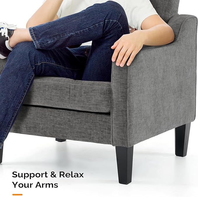 - Built for Stability and Durability--This living room chiar features soft chenille materail, resilient foam cushions with steel springs, a sturdy metal backrest, wooden frame, and solid wood legs. It provides exceptional stability and seating support, boasting a weight limit of 380lbs ensuring a comfortable experience.