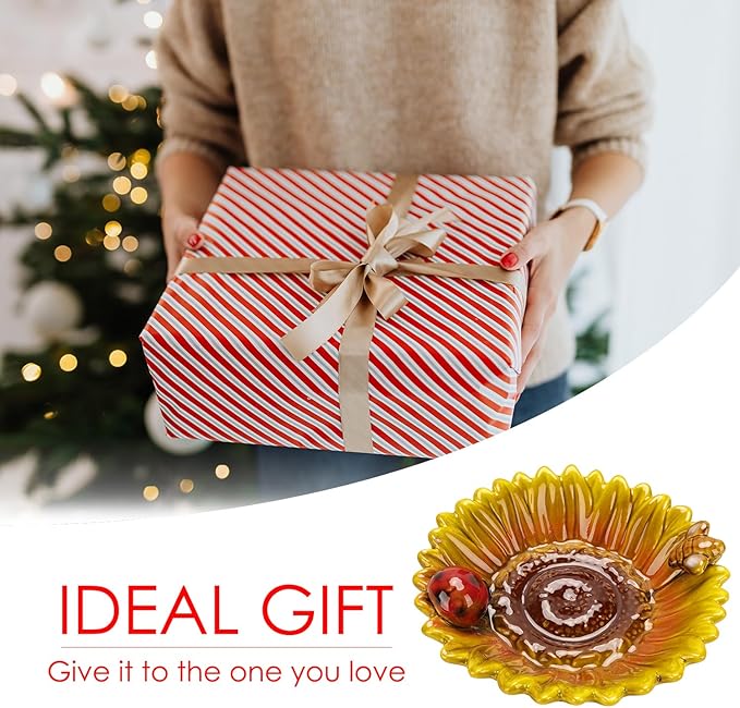 - The sunflower tray is made of quality ceramics, heavy-duty, sturdy, durable, and easy to clean.