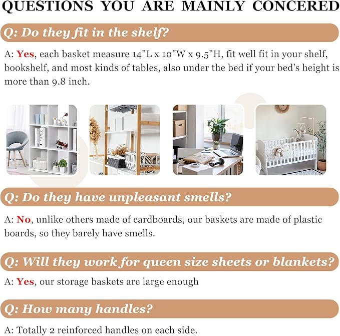 - 【FIT RANGE】 Comes with 6 pack for better value, these cloth storage bins could meet all your family storage needs, also for college dorm, RV, school, baby nursery. Measuring 14” (L) x 10” (W) x 9.5” (H), they could work as storage baskets for shelves, closet storage bins, shelf bins, under bed storage bins, or for changing tables.