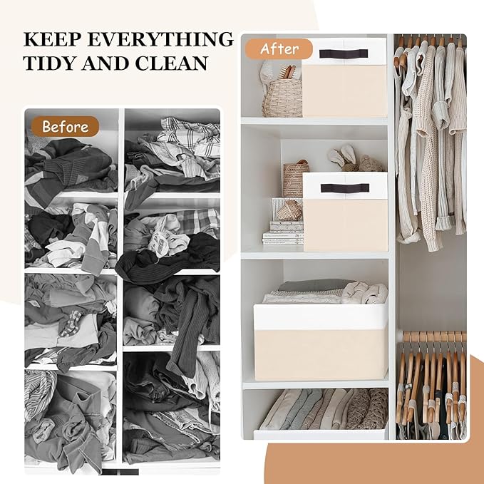 - 【STYLISH & DECORATIVE】 Designed with two tones, adorned with 2 brown handles, Not only serve as fabric storage bins, but a statement piece that reflects your discerning taste and pursuit of quality life. Bring a sense of order and refinement and a touch of warmth to your living room, bedroom, bathroom, office, nursery room, laundry room and more.