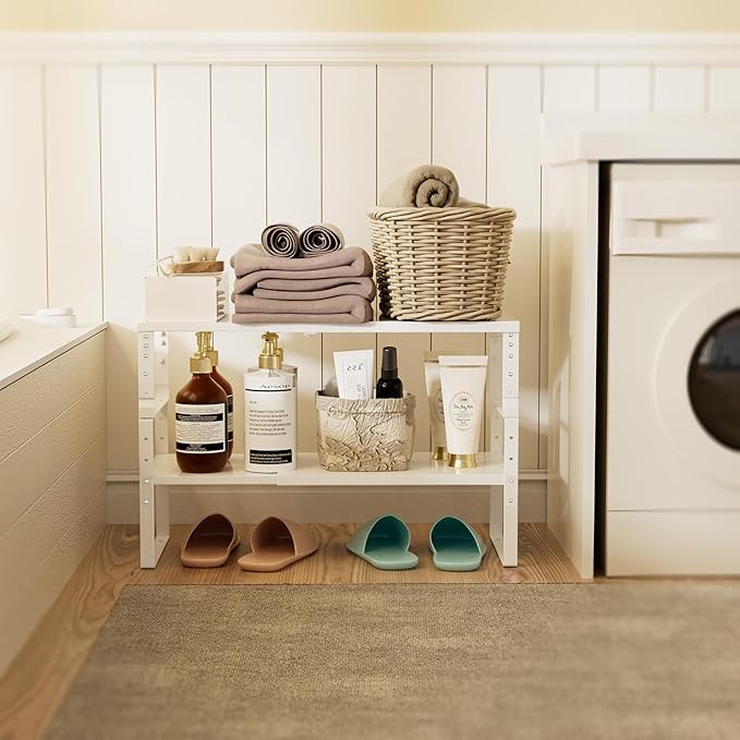Expandable,Stackable Spice Rack,Seasoning Organizer and Storage,Spices Jar Racks for Cabinet,Countertop, Metal Pantry, Cupboard,Laundry Storages,Heavy Duty(1 Pack/Medium/White)