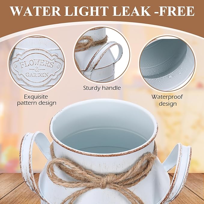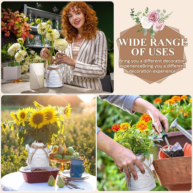 - Quality Material: the vintage rustic galvanized vase is crafted from quality galvanized metal material, strong and sturdy; This material not only upholds the product's longevity but also adds a gentle, rustic charm to its appearance, and the 2 handles make them both functional and elegant