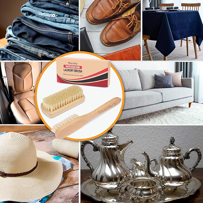 - A Useful Stain Remover: The boar bristle stain scrubber set comes in 2 different brush sizes, ideal for cleaning for household use like a curtain, tablecloths, shoes, clothes, leather surfaces, delicate items, silver items, bed sheets, coats, bags, purses, they are also perfect for cleaning and polishing grooves and rims on a platter or all the decorative scrolling, crevices, swirls and patterns of silver trays, tea set pieces and more.