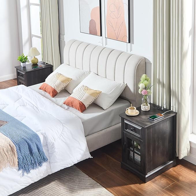 - 🌈【Nightstand with Drawer and Glass Door Storage】This bedroom side table has a Drawer and Glass Door Storage, Which can hold a lot of personal items and less frequently used items, helping you organize the items in the small space! This Side Table with Charging Station can hold common items such as decorations, cell phones, books, record players, etc.