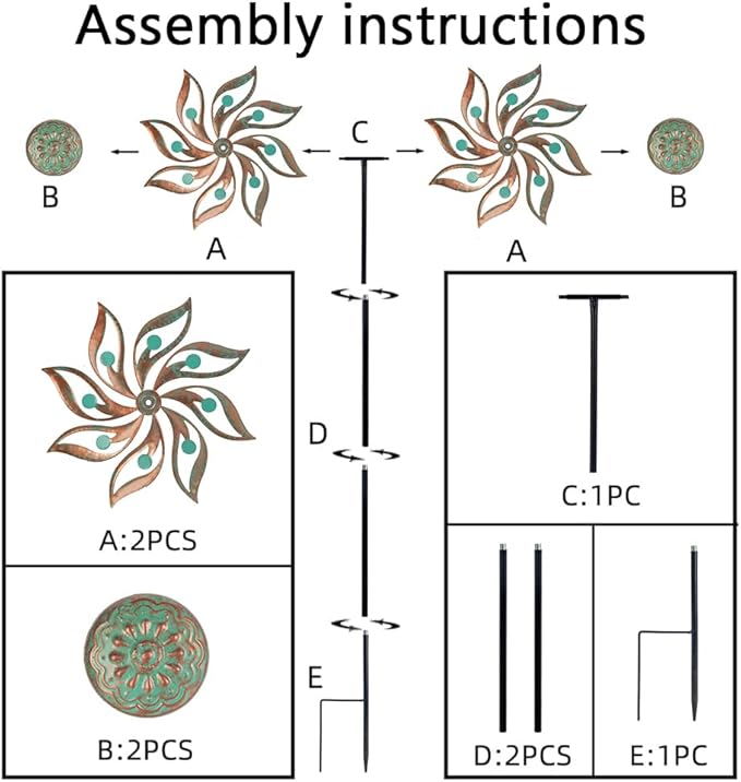 - EASY TO INSTALL:The spirally designed components of yard windmills spinners metal is very easy to install, just need to tighten all components, then insert it into the ground or lawn