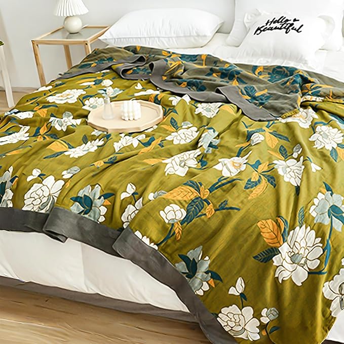 Boho Throw Blanket for Bed - 100% Pure Cotton Ultra Soft Rustic Quilt - Farmhouse Decor Bed Blankets, All Season Rustic Throw for Sofa Couch Chair(60"×80", Flower Branch)