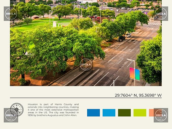 StudioUBILA Houston Wall Art Poster, Decorative Cityscape Landscape Art Prints, Home Decor Wall Art Print for Bedroom Living Room Kitchen Decorations, Unframed