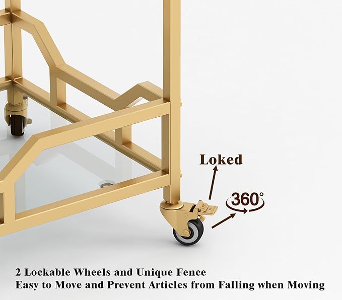 - Worried about quality? No! The frame of the bar cart gold is made of highly resistant metal,has better load-bearing capacity and stability. Modern design that will impress your guests.
