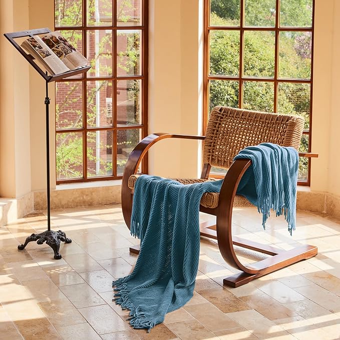 lifein Throw Blanket for Couch, Soft Boho Decor Bed Throw,Cozy Blue Chenille Knitted Small Farmhouse Lightweight Throw for Spring(Sky Blue,60 * 80")