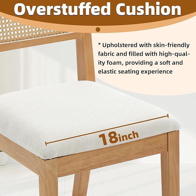 - 【Breathable Rattan Back】Hand-woven with a natural open-weave design, our chairs feature a rattan back that promotes excellent airflow. This makes them exceptionally comfortable, particularly in warmer climates. The inherent flexibility of rattan adds a gentle give, further enhancing the seating comfort.