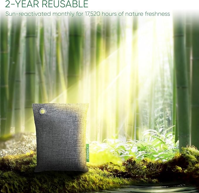 - 2 YEARS CONTINUOUS FRESHNESS - Revel in 17,520 hours of natural deodorizer odor eliminator! A simple monthly sunbath recharges the bags, making them a cost-effective choice for your pocket and a compelling one for the planet. activated charcoal air purifiers for bedroom and drawer deodorizers are also various for any space that need deodorizer, we recommend use multiple quantities for maximum deodorizing impact as smoke smell eliminator for home