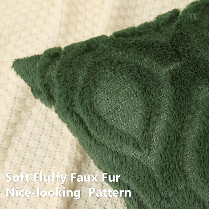 decorUhome Throw Pillow Covers 18x18 Inch Set of 2, Soft Plush Decorative Faux Fur Forest Elf Solid Couch Pillow Covers, Accent Farmhouse Neutral Square Euro Pillow Cases for Sofa Bed Living Room