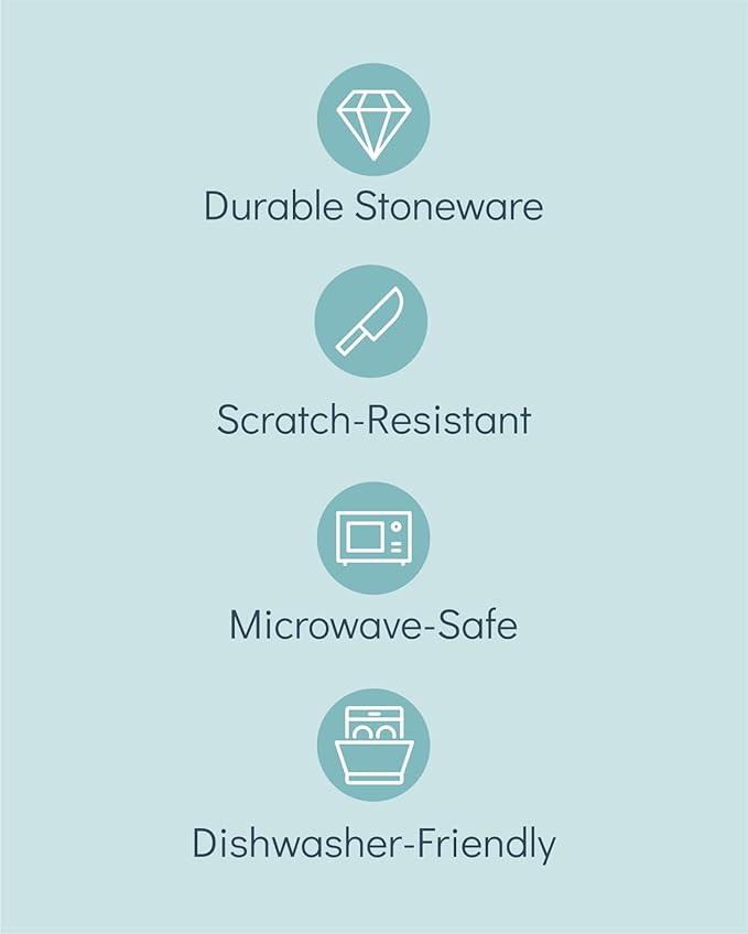 - ✅ PURE JOY THAT LASTS: Crafted from solid stoneware with a high-quality fired, glazed & scratch-resistant interior, this set is ideal for those who appreciate quality and durability in their dinnerware.