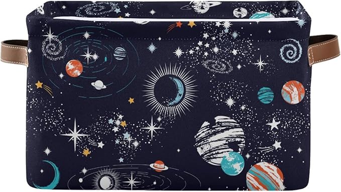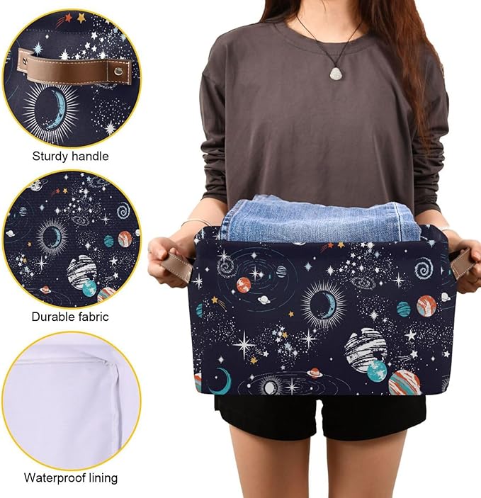 Storage Basket Bin Space Galaxy Constellation Organizer Basket Collapsible Shelf Basket Cube with handle for Nursery Bedroom Bathroom, one sizex1