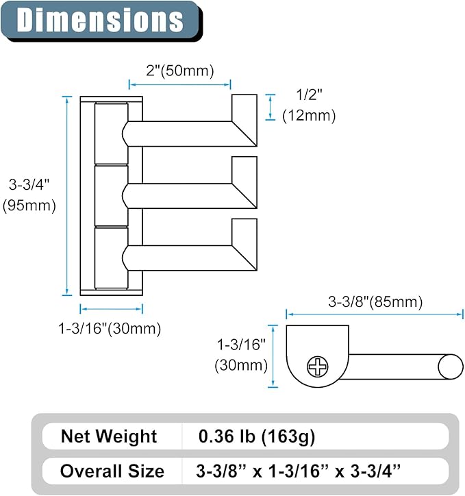 - FUNCTIONAL ASSISTANT: using length of the horizontal holding portion is 2 3/8"(60mm) for wider objects, simple curves outline modern cylindrical structure to complement different home styles