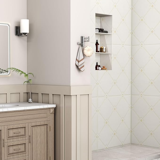 Angle Simple Swivel Towel Hooks, SUS 304 Stainless Steel Foldable Robe Hand Towel Holder for Bathroom Kitchen Wall, Brushed Nickel, 2 Pack