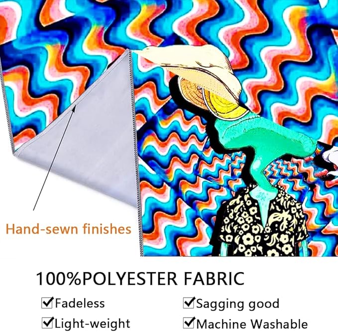 • 🌞 High-Quality Material: Made from 100% polyester, ADDWel tapestry is durable, lightweight, and easy to clean. It can be washed and ironed at low temperatures without losing its colors. The fabric is also soft to the touch and won't irritate your skin, making it perfect for use as a bedspread, wall hanging, or beach blanket.