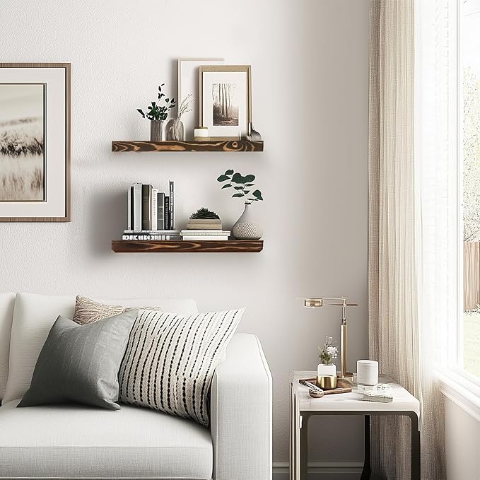 - Wide and Thick Design: With a 6.8-inch width and 1.2-inch thickness, these floating shelves provide enhanced durability and storage capacity, perfect for holding books, photos, and small plants while keeping your space organized