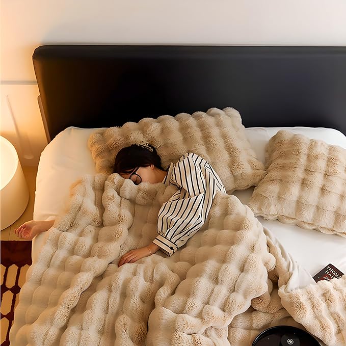 - Luxurious Furry Blanket: Our faux fur throw blanket boast dense texture, which ensuring maximum warm and comfort in your bedroom during chilly night. Its skin-affinity properties make it a nice choice for snuggling up.