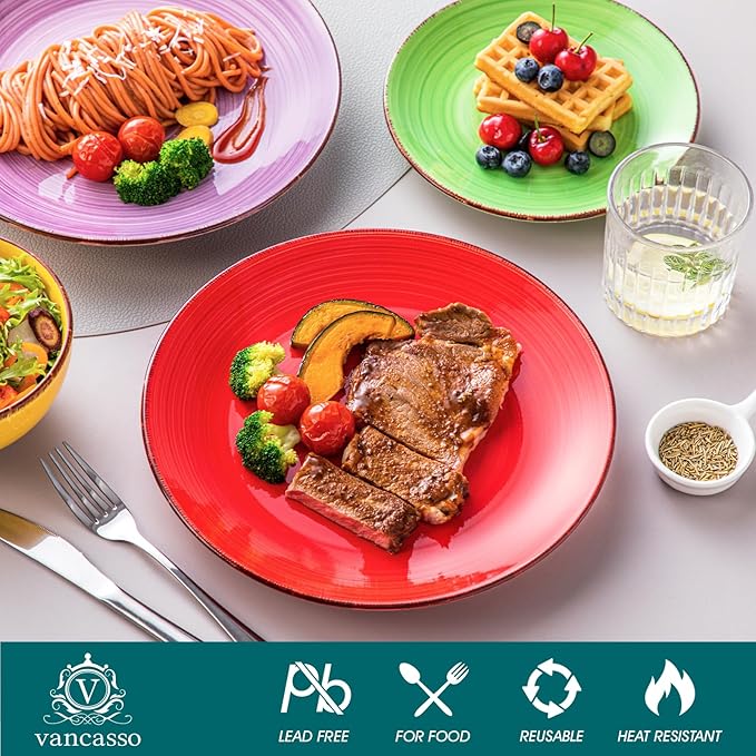 - 【Unique Spiral Design】The Bonita dinnerware set features a captivating spiral pattern, adding an artistic touch to your table. This dishes set for 4 stands out with its eye-catching design and vibrant colors.