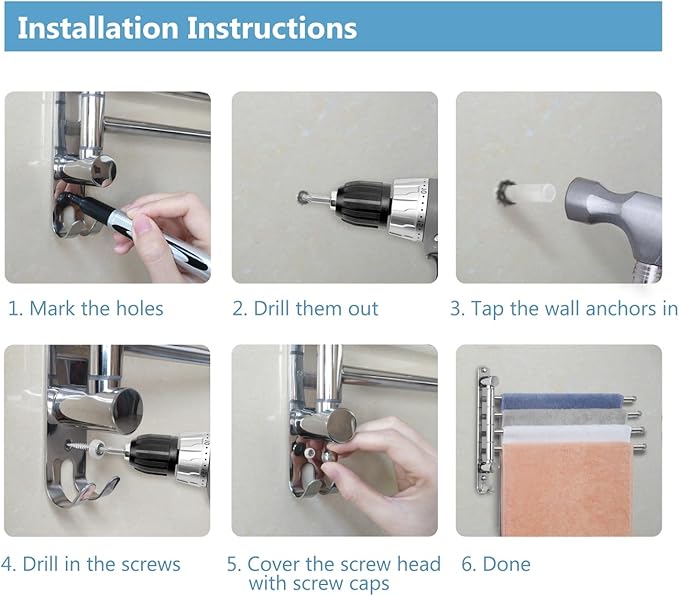 - Rotates 180Β°: Multiple swivel arms allows you to spread out the desired arms for easy drying, and swivel them back against the wall to save space. The arms of this item are relatively long. Please measure in advance of purchase.