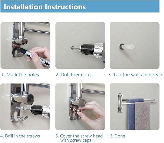 - Sturdy & Durable: Made with rustproof materials and SUS304 stainless steel, this towel bar is corrosion-resistant, long-lasting and easy to clean.