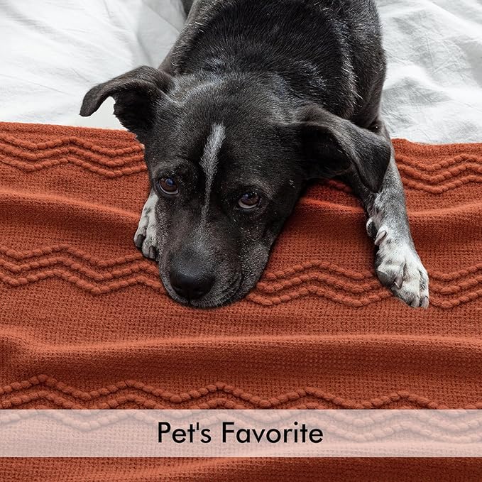 - BOHO DECORATIONS:Special knitted pattern and cute tassel design make this throw blanket easy to match with your home decoration to bring your room a farmhouse touch. The rust blanket could enhance the coziness and warmth of your home during the fall season.When the weather turns cooler, it could create a warm atmosphere and lift your mood.