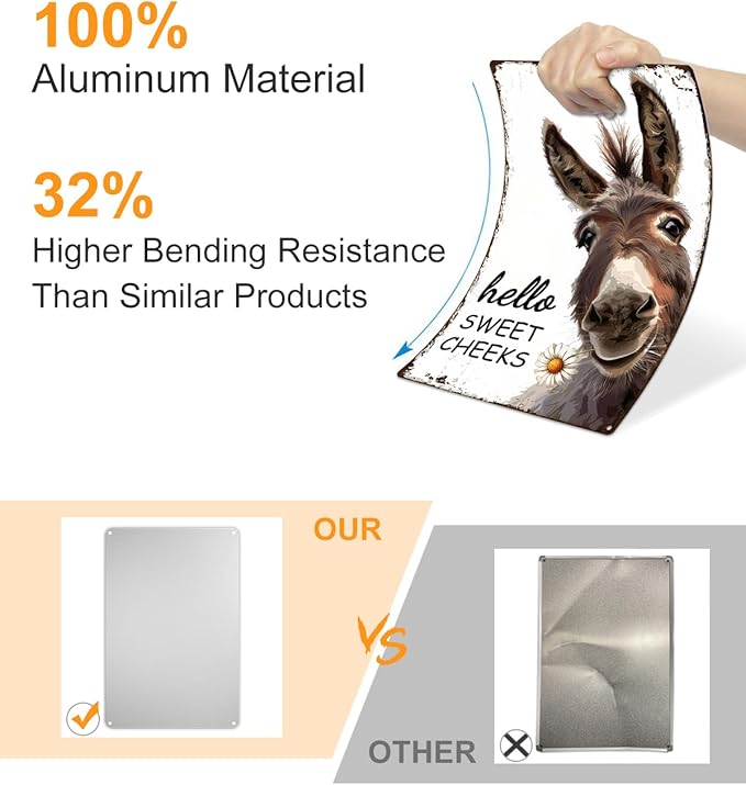 ALKB Western Bathroom Decor Vintage Donkey Gift - Funny Bathroom Restroom Toilet Decoration - Hello Sweet Cheeks Metal Sign 8x12 Inch