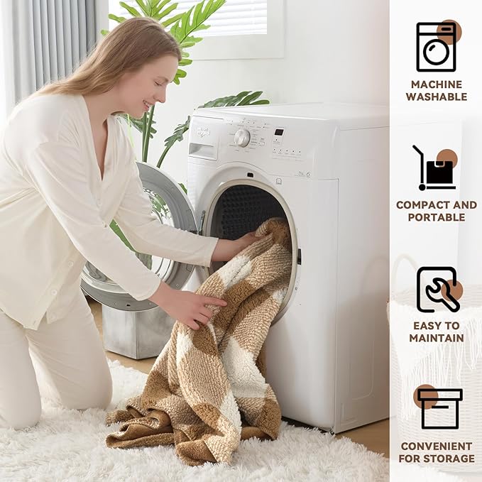LURKA Checkered Sherpa Fleece Throw Blanket - Extra Thick and Warm Winter Soft Fuzzy Plush Blanket for Couches, Beds & Pets, Brown, 50x60 Inches