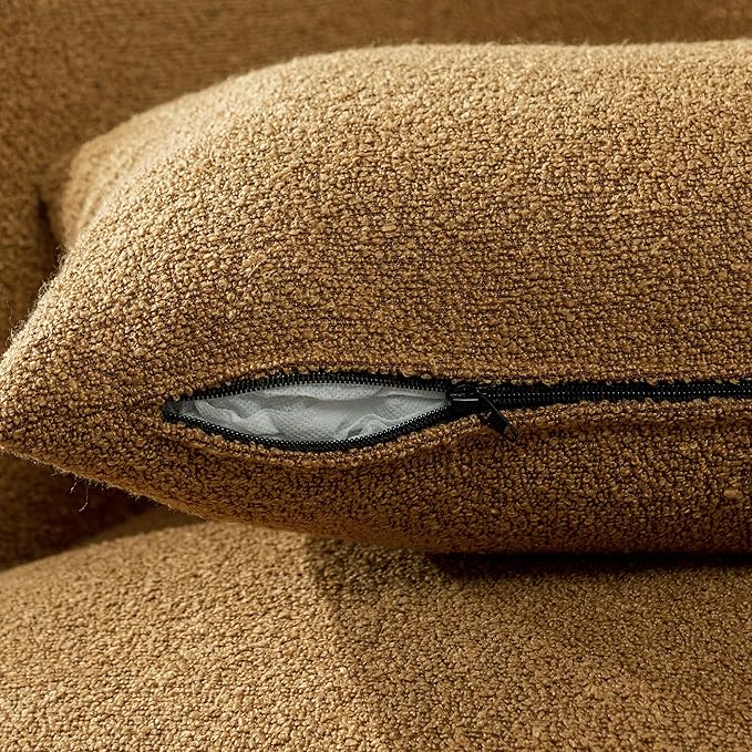 KINWELL 34" Wide Boucle Swivel Barrel Chairs Set of 2, No Assembly Round Upholstered Armchairs Accent Chairs Single Sofa Chair with Toss Pillow for Living Room and Bedroom, Brown