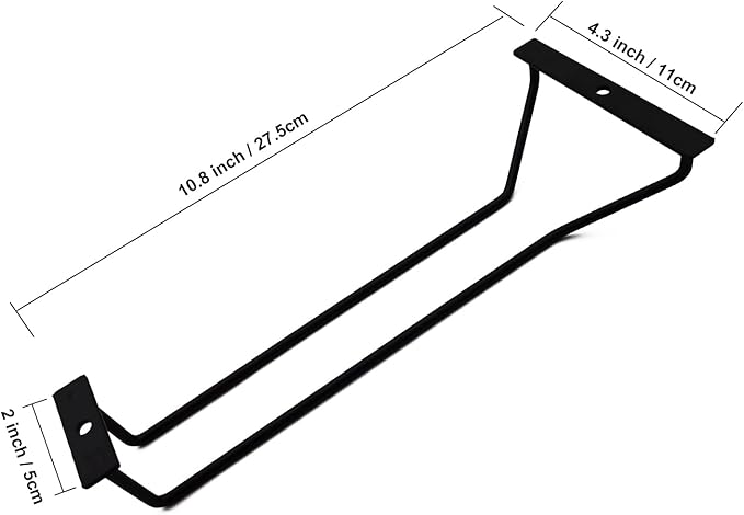 - EASY TO INSTALL: The wine glass holder comes fully assembled but requires installation. Hardware included for easy mounting. Installation is a breeze with the included screws and anchors. Fits under most cabinets. Enjoy the installation!