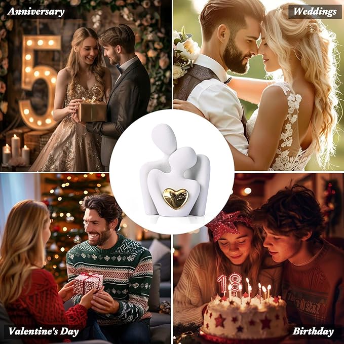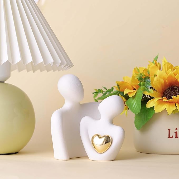 - Couples Bedroom Decor: This ceramic 'Hugging Couple Statue' embodies love and intimacy as the couple figurine shares a gaze, with a shining gold heart at the center, symbolizing a bright and precious bond. It's a mini yet impactful piece that brings a symbolic sparkle to any room, from the living room to the love office decor.
