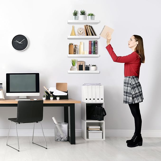Sorbus Floating Shelves for Wall, Bathroom Shelves Wall Mounted for Kitchen, Bedroom, Living Room, Bathroom Storage, Over Toilet, Hanging Book Shelf for Wall Home Decor (White, 4 Pack)