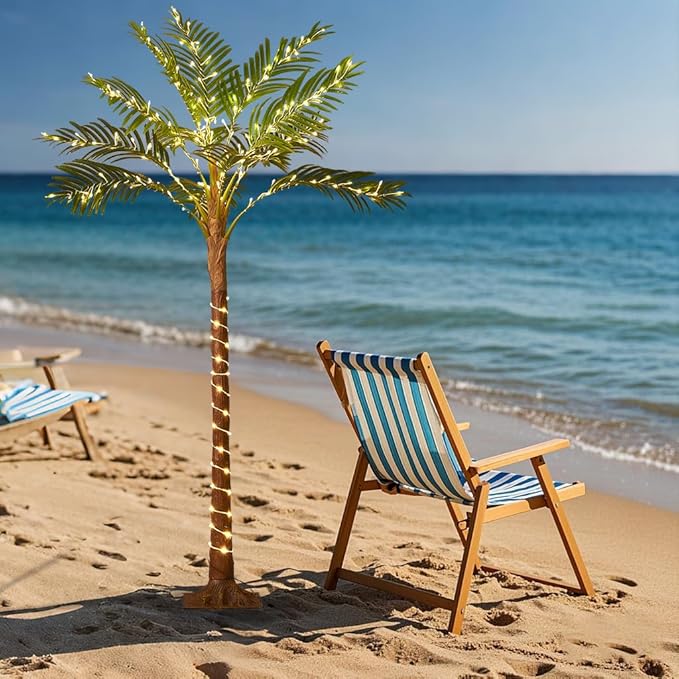 Birchlitland Lighted Palm Trees for Outside Patio 6FT 220 LED Fairy Lights, Artificial Palm Tree Lights Plug in for Home Pool Beach Decoration