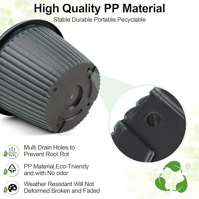 - 【Perfect Size & sturdy Material】Top diameter: 16 inch, bottom diameter: 10.8 inch, height: 11.02 inch, capacity: 7 gallon. Plastic plant pots are made of recyclable polypropylene resin which is lightweight but sturdy, not easy crack. These indoor outdoor planters are UV and weather resistant. 10 inch flower pot is perfect for planting medium to large sized plants.