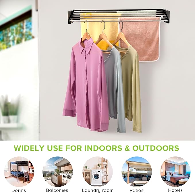 - This drying rack is versatile and can be placed in various locations such as bathrooms, kitchens, laundry rooms, garages, hotels, dorm rooms, patios, mudrooms, outdoor pools, indoor pools, and balconies