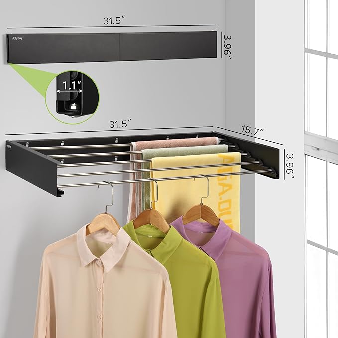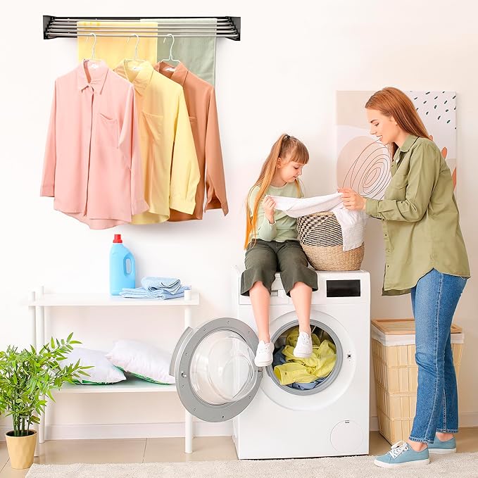 - Collapsible laundry drying rack is the ideal space-saving solution. Wall-mounted and foldable, it neatly tucks away when not in use, freeing up valuable floor space