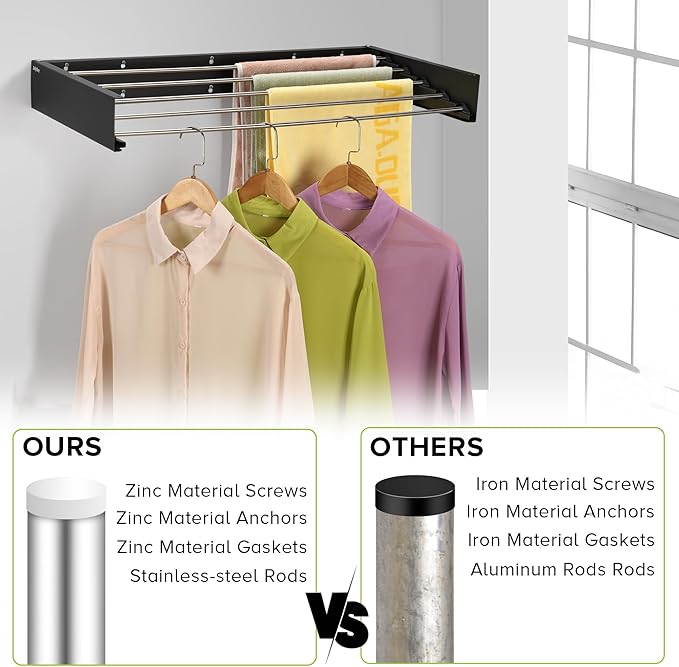 - Laundry drying rack includes an installation manual, accessories bag, and borehole locator paperboard for easy setup. In just minutes, you'll have a functional and dependable collapsible clothes drying rack.