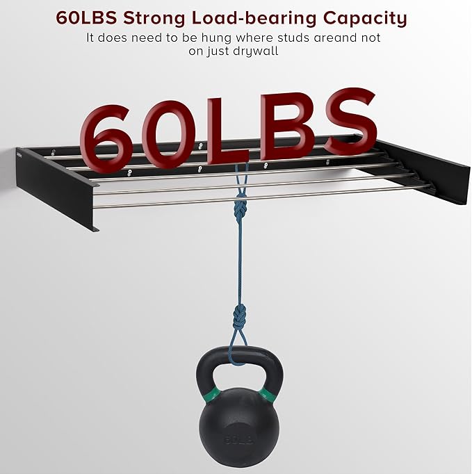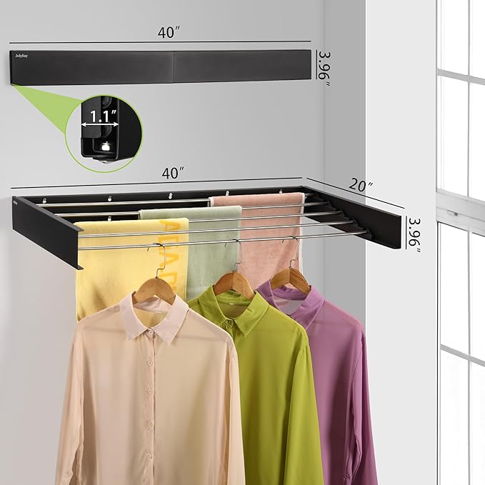 Wall Mounted Laundry Drying Rack, Retractable Clothes Drying Rack for Bathroom with Wall Template, 5 Stainless Rods Heaving 60 lb Capacity (Black, 40")