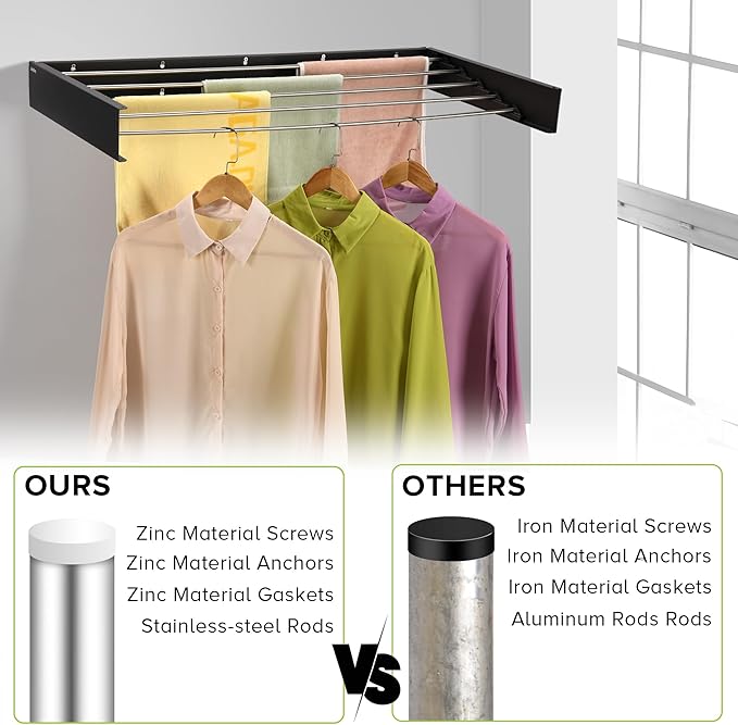 - Crafted from carbon steel coated with rust-resistant finishing, our heavy-duty clothes drying rack ensures stability and durability for drying garments becomes effortless and efficient, thanks to its smooth airflow design