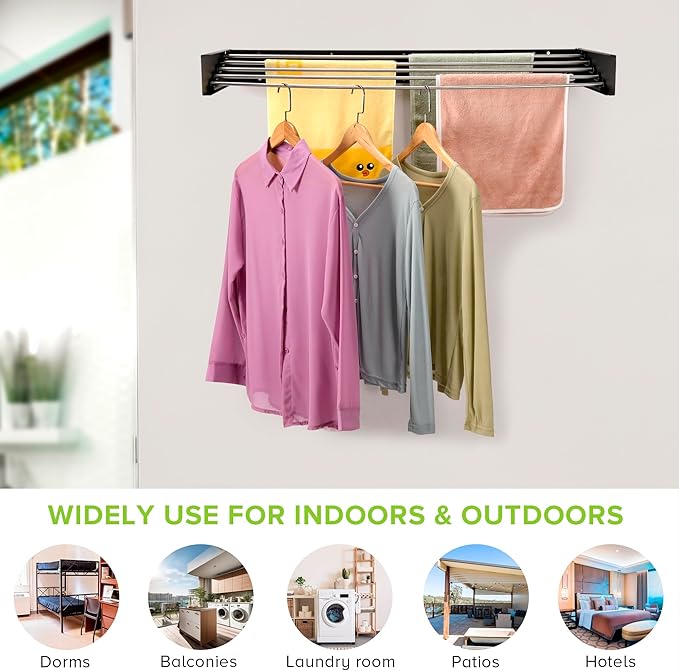 - This drying rack is versatile and can be placed in various locations such as bathrooms, kitchens, laundry rooms, garages, hotels, dorm rooms, patios, mudrooms, outdoor pools, indoor pools, and balconies