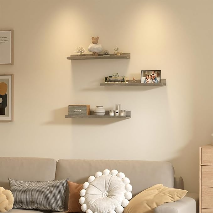 - Nice decoration: This wooden shelving unit features a wooden structure and grey finish, making it a perfect example of minimalist design. You can use these wood floating shelves to display picture frames, small plants, or decorations, and whether itβs a modern or vintage space, this gray wall-mounted shelf will add a touch of elegance and sophistication to your home.