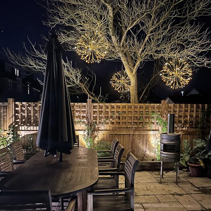 Christmas led Sparkle Ball Hanging Outdoor décorations -Haning Twig Ball,Snowflake Ornament Lights Indoor Outdoor Festive Holiday Décor 24Inch (Warm White)