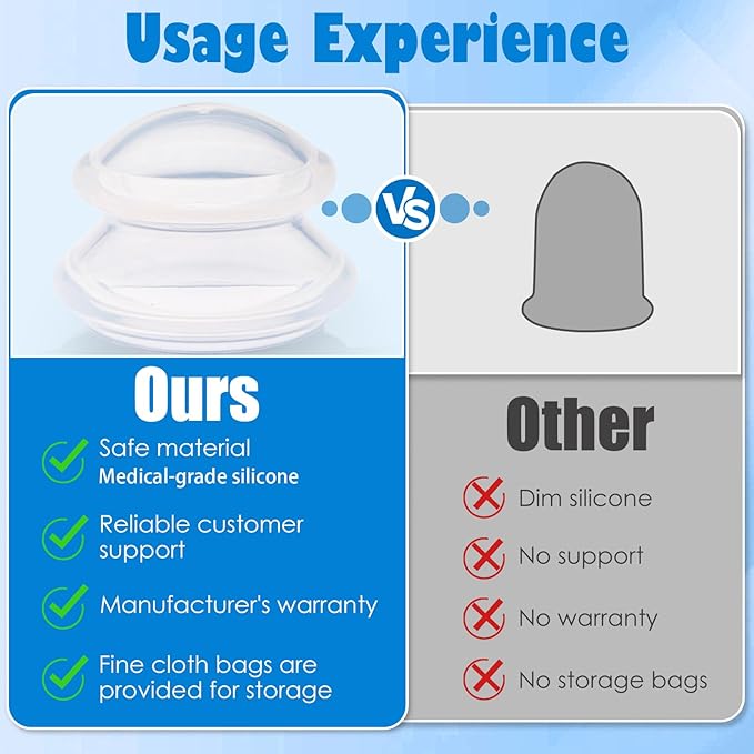 - Classic Cupping Therapy No Side Effect: 5 minutes of cupping therapy is equivalent to half an hour of deep massage. Good for improving blood circulation and detoxify the body.