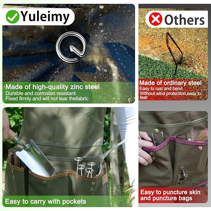 - Large G-Shaped Round Top (1.3"): Distributes pressure evenly to avoid fabric tearing, provides 6X holding power vs U-shaped staples for windproof anchoring